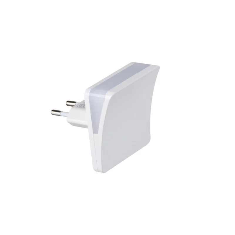 Lampka nocna firmy Kanlux o kwadratowej formule służy do dyskretnego oświetlenia mieszkania. Dzięki niewielkiemu poborowi mocy lampka do kontaktu jest bardzo funkcjonalna i energooszczędna. Idealnie sprawdzi się do podświetlenia ciemnego korytarza, sypialni dodając jej romantycznego charakteru czy pokoju dziecka dodając maluchowi poczucia bezpieczeństwa. Oprócz delikatnychh możliwości oświetleniowych lampka wtyczkowa do gniazdka jest również doskonałą dekoracją lub idealnym drobnym upominkiem. Lampa świeci delikatnie ciepłym światłem z mocą do 0,28W i strumieniem świetlnym na poziomie 2lm. Biała lampka do kontaktu posiada czujnik zmierzchu, może być montowana w górę lub dół.