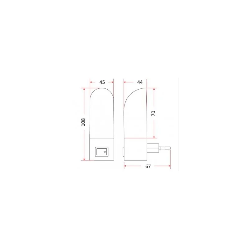 Lampka nocna firmy Rum-lux służy do dyskretnego oświetlenia mieszkania. Mini lampka wtykana bezpośrednio do gniazda 230V świeci ciepłym światłem 5 diodami led o mocy 0,14W każda ( 0,7W). Dzięki niewielkiemu poborowi mocy lampka do kontaktu jest bardzo funkcjonalna i energooszczędna. Idealnie sprawdzi się do podświetlenia ciemnego korytarza, sypialni dodając jej romantycznego charakteru czy pokoju dziecka dodając maluchowi poczucia bezpieczeństwa. Oprócz funkcjonalnych możliwości oświetleniowych lampka wtyczkowa do gniazdka jest również doskonałą dekoracją lub idealnym drobnym upominkiem.