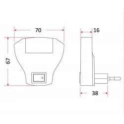 - Wymiary (wysokość x głębokość x szerokość): 67mm x 38mm x 70mm