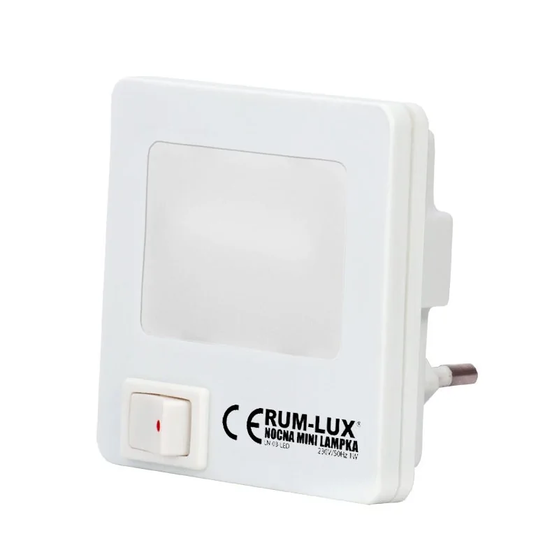 Lampka nocna wtykowa do kontaktu kwadratowa biała LN-03 RUM-LUX
