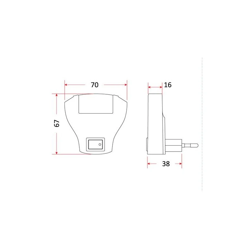 - Wymiary (wysokość x głębokość x szerokość): 67mm x 38mm x 70mm