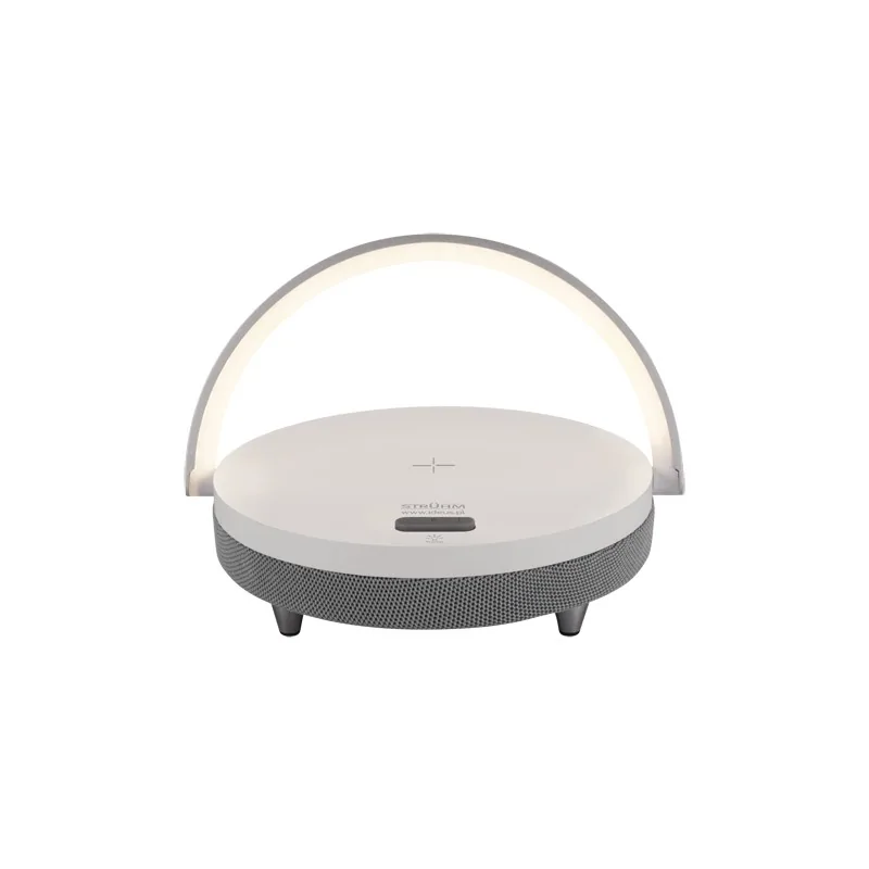 Lampa z ładowarką indukcyjną do telefonu i głośnikiem bluetooth