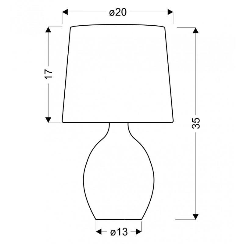 - Materiał: podstawa ceramiczna, abażur tkanina + PCV