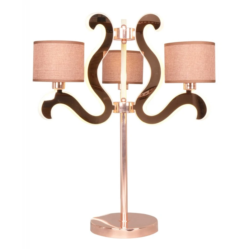 Nowoczesna i elegancka lampa stołowa AMBROSIA 43-33925, składająca z trzech ramion, w których pod matowymi, białymi osłonkami subtelnie ukryto LED-owe paski. Każde ramię wyposażono dodatkowo w abażur z grubo tkanego materiału, pod którym producent zaprojektował miejsce na główne źródło światła w postaci żarówek E14 do max mocy 40W (brak w zestawie). Solidna, stabilna metalowa podstawa w kolorze miedzi oraz ramiona starannie wykończone, błyszczącą strukturą imitującą przeźroczystość elementu oraz brązowe abażury tworzą spójną stylistycznie całość. Lampa nocna zasilana przewodem na którym umieszczono przełącznik. Zaświecanie LED i E14 może odbyć się jednocześnie lub osobno. Światło LED w ciepłej barwie sprawia, że lampa użyta w salonie, czy też w sypialni jako uzupełniające doświetlenie pomieszczenia pozwoli użytkownikom w pełni się zrelaksować. Seria AMBROSIA składa się z lamp wiszących oraz kinkietów w dwóch kolorach. Produkt objęty jest gwarancją producenta.
