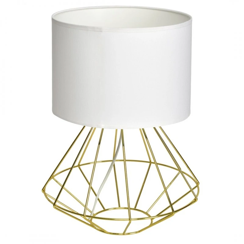 Stołowa lampka serii LUPO to loftowe oświetlenie, które doskonale nada się do sypialni na stolik nocny. Biały kolor abażuru doskonale sprawdzi się w każdej aranżacji, a złota podstawa w geometrycznym kształcie dodaje lampce ciekawego charakteru. Brak źródła światła w zestawie sprawia, że możesz samodzielnie dopasować moc, barwę oraz jasność żarówki do swoich potrzeb. Prezentowana lampka biurkowa współpracuje z żarówką z tradycyjnym gwintem E27. Lampka dostępna jest również w wersji z czarnym abażurem.