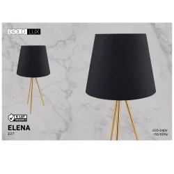 Nocna lampka ELENA marki POLUX-GOLDLUX to eleganckie oświetlenie stołowe, które doskonale będzie prezentować się np. na stoliku nocnym w sypialni czy jako delikatne oświetlenie w salonie. Lampka ELENA wyposażona została w czarny abażur oraz trzy złote nóżki. Brak źródła światła w zestawie pozwala na indywidualne dopasowanie mocy, barwy i natężenia światła do własnych potrzeb oraz danego pomieszczenia. Dedykowanym źródłem światła jest led-owa żarówka z tradycyjnym grubym gwintem E27, nieprzekraczająca 20W mocy.