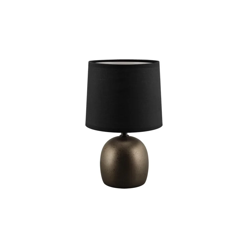 Lampka stołowa ATENA marki IDEUS doskonale nada się jako oświetlenie do salonu, gabinetu czy na stolik nocny do sypialni. Podstawa wykonana została z z wysokiej jakości ceramiki i stali nierdzewnej wpadającej w złoty/satynowy kolor, natomiast abażur z tkaniny wzmacnianej tworzywem w kolorze czarnym. Lampka nocna przeznaczona została do współpracy z żarówką z małym gwintem E14 o maksymalnej mocy 40W led. Brak źródła światła w zestawie pozwala na indywidualne dobranie mocy, barwy i innych parametrów żarówki do własnych potrzeb. Czarna lampka stołowa jest niewielkich wymiarów: 255 x 160 160mm.