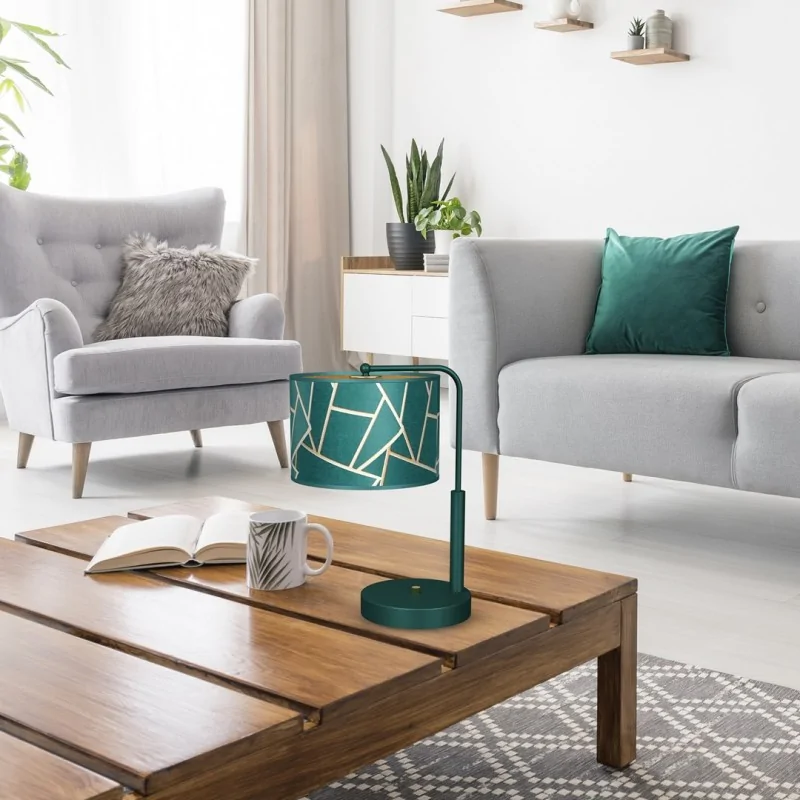 Ponadczasowa lampka stołowa ZIGGY MLP7581, w modnym już od kilku sezonów kolorze butelkowej zieleni posiada złote elementy, które nadają szyku i nietuzinkowości całej oprawie. Sprawdzi się jako nowoczesne, dodatkowe oświetlenie w pomieszczeniu, Konstrukcja wykonana została z metalu oraz tkaninowego klosza. Jest to propozycja marki EKO-LIGHT, która przystosowana została na tradycyjną żarówkę o trzonku E27 (brak w zestawie). Lampa posiada włącznik na podstawie, który ułatwi użytkowanie oraz jest dodatkowym elementem dekoracyjnym. W serii ZIGGY dostępnych jest aż 30 różnych lamp w kolorze białym, różowym i zielonym.