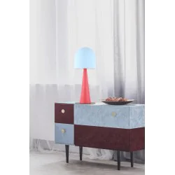 Ta stylowa lampka stołowa łączy w sobie odważną kolorystykę i nowoczesną formę, tworząc wyjątkowy akcent dekoracyjny w każdym wnętrzu. Metalowa konstrukcja w zestawieniu barw niebieskiego i czerwonego nadaje jej dynamiczny, designerski charakter, który świetnie wpisuje się zarówno w nowoczesne, jak i bardziej eklektyczne aranżacje. Wysoka, smukła sylwetka sprawia, że lampa prezentuje się elegancko na biurku, komodzie czy stoliku nocnym, a oprawka E27 pozwala dopasować rodzaj i intensywność światła do własnych potrzeb. To doskonały wybór dla osób ceniących funkcjonalność połączoną z wyrazistym stylem.