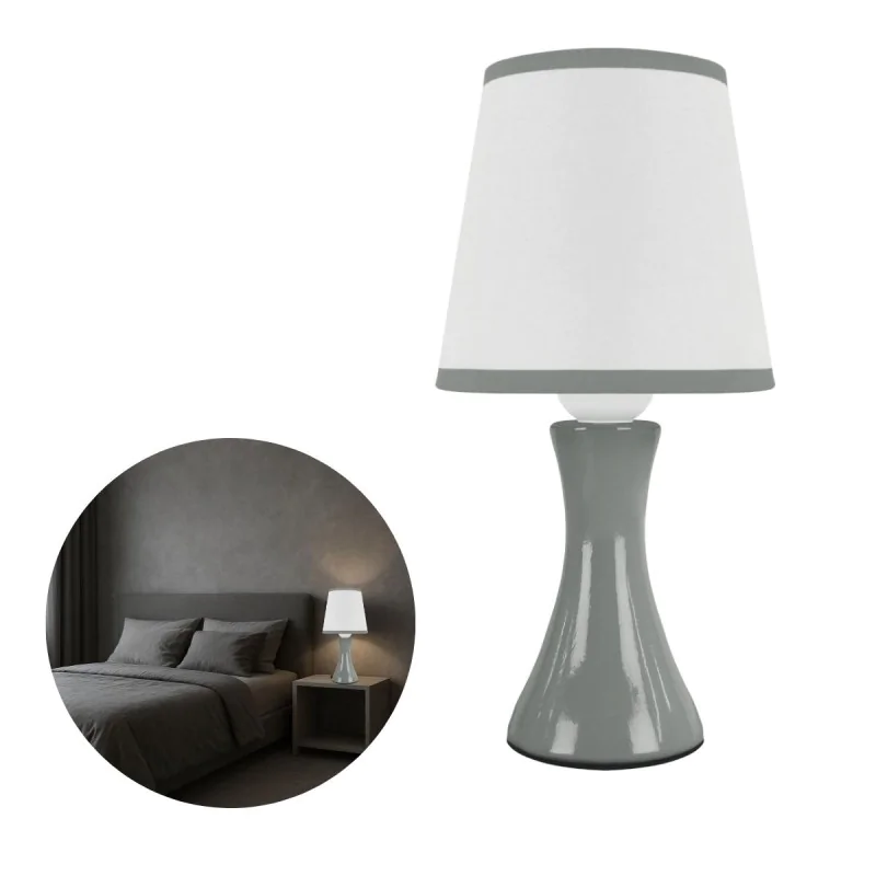 Lampka nocna stołowa szara na szafkę nocną E14 POLINA 04738 IDEUS