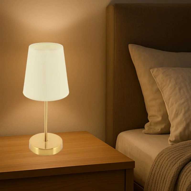 Złota lampka nocna na stolik w sypialni