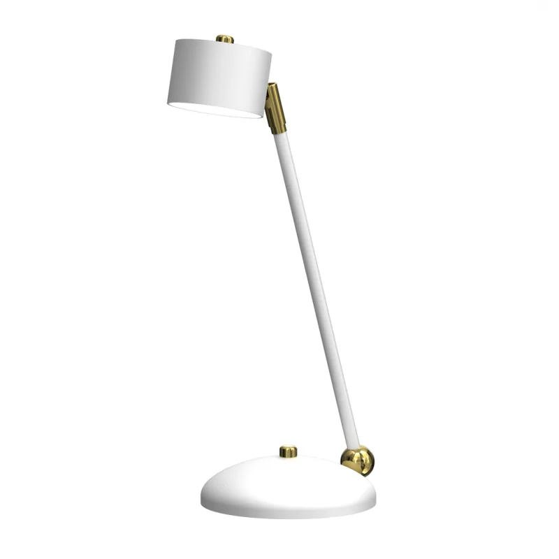 Delikatna propozycja oświetleniowa ARENA MLP7758 od marki EKO-LIGHT, nada się zarówno jako lampka nocna, biurkowa czy dodatkowa funkcjonalna dekoracja pomieszczenia. Ruchomy klosz zdecydowanie ułatwia użytkownie i poprawia komfort przy zwykłych pracach. Lampka mierzy 40cm wysokości, a średnica podstawy wynosi 15cm. Całą konstrukcja wykonana jest z metalu w kolorze bieli z dodatkami złotymi, które nadają nieco szaleństwa i nowoczesności całej konstrukcji. Lampa stołowa przystosowana jest na żarówkę o gwincie Gx53 (brak w zestawie). Ten model znajdziemy w 6 różanych kolorach - cała seria łącznie ma dostępnych aż 36 lamp.
