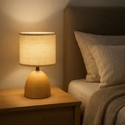 Stylowa lampa na szafkę nocną imitacja drewna