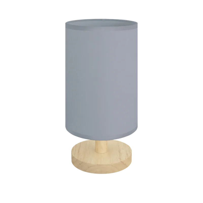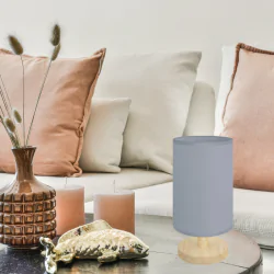 Lampka stołowa szara z drewnianą podstawą E14 BELA IDEUS