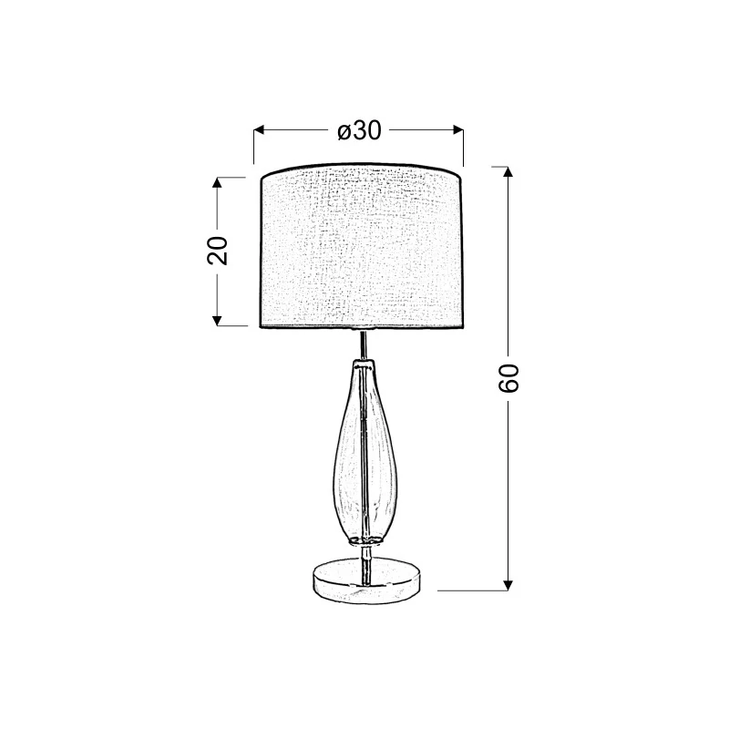 Lampa stołowa o transparentnej podstawie oraz tkaninowym abażurze