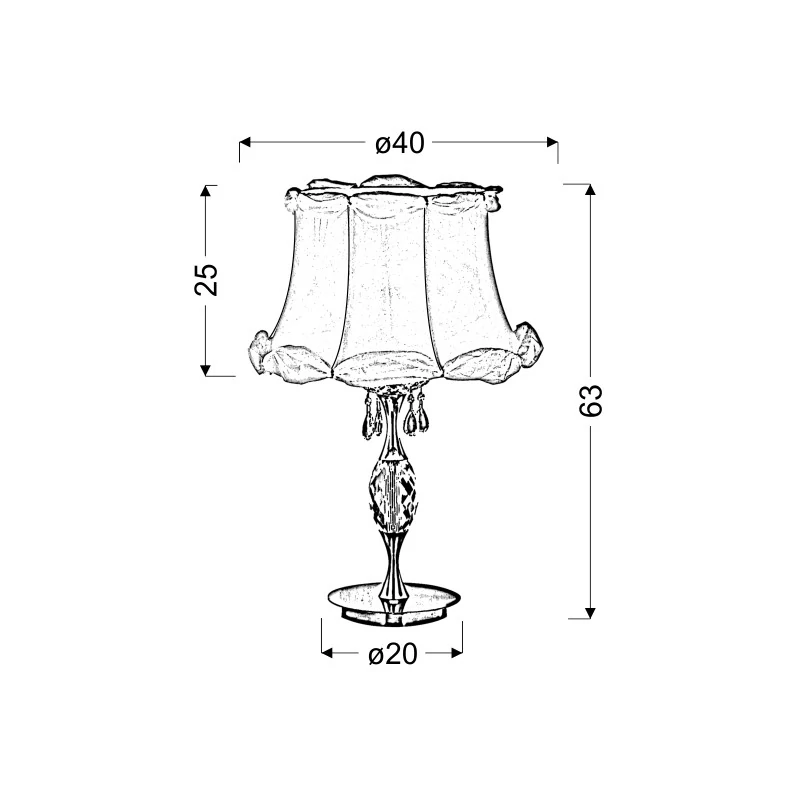 Lampa nocna SAFONA 41-13347 to wyjątkowe oświetlenie z dużą ilością ozdób, z pewnością przypadnie do gustu osobą, które lubią unikatowość i przepych. Jest to połączenie szkła z chromowym metalem oraz delikatnym tkanym abażurem. Dodatkowo przyozdobiona jest kryształkami, zwisającymi od środka klosza, które również znajdują się na podstawie. Wymiary wynoszą: wysokość - 63cm i długość/szerokość - 40cm. Lampa gabinetowa marki Candellux ma miejsce na jedno źródło światła o gwincie E27 do max mocy 60W (brak w zestawie). Połączenie kryształków z chromem jak i tkaninowym abażurem sprawia, że efektownie i ciekawie światło rozprasza się w pomieszczeniu. Produkt objęty jest gwarancją producenta.