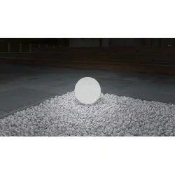 Oprawa ogrodowa w kształcie kuli STONO 585N firmy KANLUX, to oryginalne oświetlenie, którego powierzchnia imituje granit. Doskonale sprawdzi się do podświetlania tarasów, ogrodowych dróżek. W zestawie dołączone są także nóżki umożliwiające zainstalowanie lampy ogrodowej w gruncie. Oprawa ogrodowa o średnicy 23cm zasilana jest prądem sieciowym, posiada długi 3 metrowy kabel z wtyczką. Dzięki temu lampę ogrodową możemy użytkować cały rok niezależnie od warunków atmosferycznych, co gwarantuje stopień ochrony IP 65. Jako źródło zasilania można użyć żarówkę o maksymalnej mocy 15W z gwintem E27. Wybrany model możesz znaleźć także w innych rozmiarach np. dostępne są kule o średnicy 30, 40 i 50 cm.