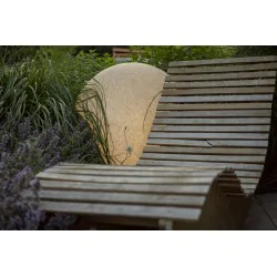 - Estetyczny wygląd (imitacja kamienia) – kula przypomina naturalny kamień, dzięki czemu dobrze komponuje się z ogrodem, skalniakiem i krzewami