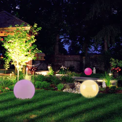 Nowoczesna kula LED to nie tylko funkcjonalne, ale i dekoracyjne oświetlenie. Możliwość wyboru kolorowego światła RGB lub ciepłej białej barwy pozwala dostosować oświetlenie do okazji i własnych upodobań. Wysokiej jakości diody LED zapewniają jasne, równomierne światło, które doskonale eksponuje tarasy, ścieżki, roślinność oraz elementy małej architektury ogrodowej. Dodatkowo pilot umożliwia wygodne sterowanie trybami świecenia, co pozwala na zmianę kolorów oraz efektów świetlnych, takich jak płynne przejścia czy miganie.