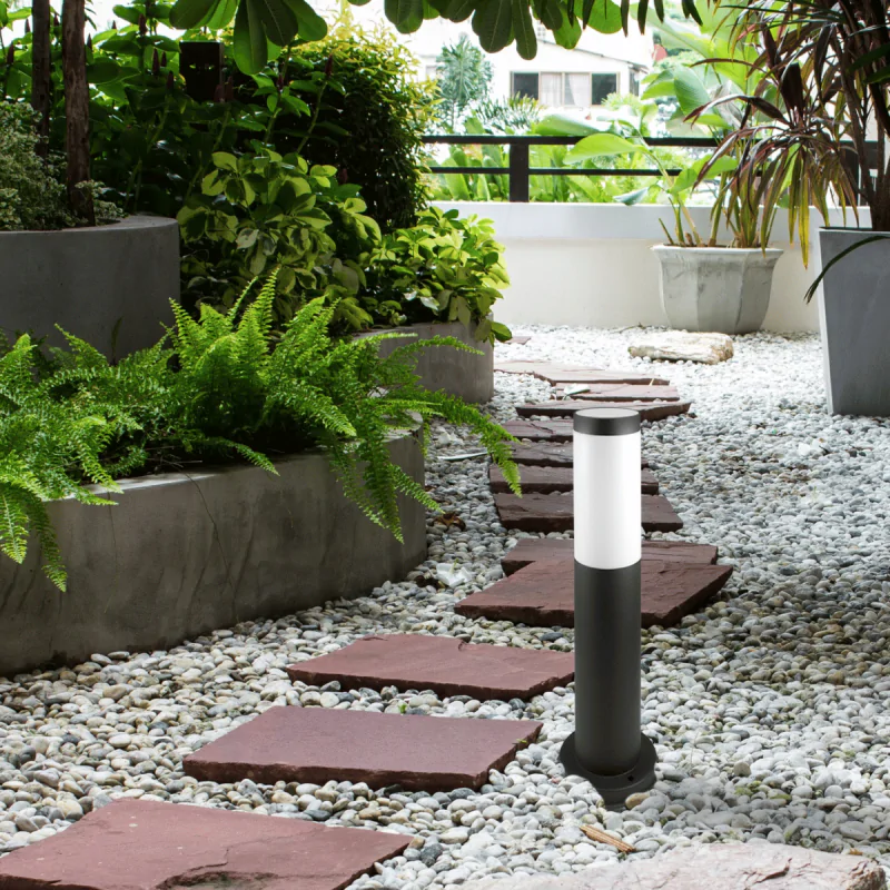 Solidna konstrukcja o wysokości 45 cm została wykonana z trwałych materiałów odpornych na zmienne warunki atmosferyczne. Klasa szczelności IP44 chroni lampę przed wilgocią, kurzem i pyłem, co gwarantuje bezpieczne i niezawodne działanie przez cały rok. Lampa ogrodowa słupek to wybór, który łączy praktyczność z estetyką – idealna do ogrodu, na taras, wzdłuż ścieżek lub wokół podjazdu.