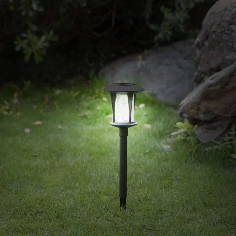 Lampa solarna BOLTON idealnie wkomponuje się między rabaty kwiatowe. Zasilana energią słoneczną, to świetna alternatywa dla standardowego oświetlenia w ogrodzie. Zbudowana w całości z czarnego tworzywa sztucznego. Dzięki wbudowanemu panelowi słonecznemu lampę umieścimy w dowolnej części ogrodu bez konieczności doprowadzania przewodów elektrycznych. Czujnik zmierzchu zamontowany w lampie automatycznie włączy ją po zmierzchu oraz wyłączy o świcie. Po całkowitym naładowaniu lampa świeci około 6-8 godzin, barwą neutralnego białego światła o wartości 4000K. Oświetlenie ogrodowe ze stopniem ochrony IP44 odporne jest na niekorzystne warunki atmosferyczne takie jak błoto, deszcz, śnieg. Lampę montujemy bezpośrednio w gruncie na zaostrzonej końcówce słupka lampy solarnej.