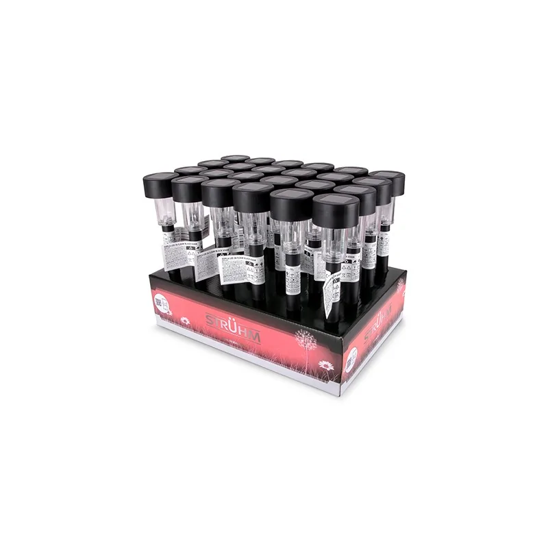 Solarna lampka ogrodowa led SOLA LED to doskonała dekoracja, która znajdzie zastosowanie w każdym ogrodzie. Jest to świetnie rozwiązanie na dekorację skalniaku czy alejki. Lampki solarne przeznaczone są głównie do dekoracyjnego oświetlenia ze względu na ich niską intensywność światła. Prezentowana lampka świeci zimnym białym światłem o temperaturze barwowej 6500K. Ze względu na podwyższony stopień odporności IP44 produkt odporny jest na wnikanie pyłów oraz wilgoci. Lampkę solarną należy ładować w nasłonecznionym miejscu- po całkowitym naładowaniu akumulatora może świecić około 6h.