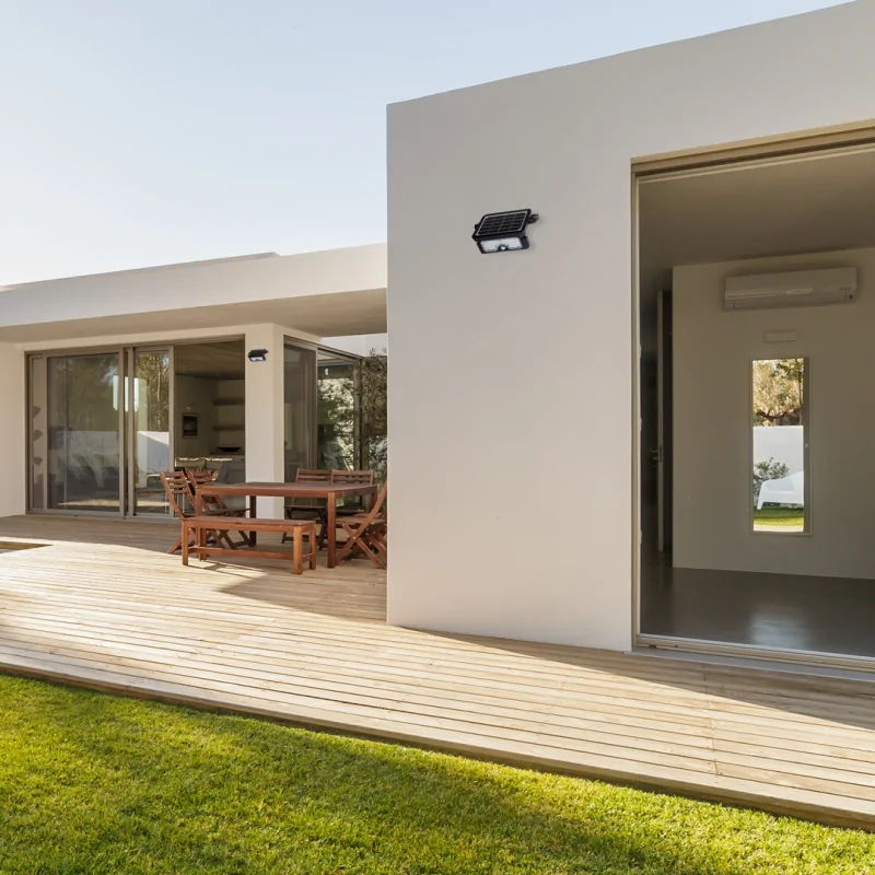 Naświetlacz solarny EPAD marki EKO-LIGHT, wykonany jest z trwałych oraz wysokiej jakości materiałów, które będą służyć Twoim potrzebom przez lata. Jest wodoodporny, łatwy w instalacji i obsłudze oraz jest wszechstronnym, doskonałym rozwiązaniem dla potrzeb oświetlenia zewnętrznego. Lampa posiada wbudowany czujnik ruchu, który wyposażony jest w 2 tryby świecenia. Każda dioda LED posiada soczewkę, dzięki czemu obszar świecenia jest dużo większy niż w diodach bez soczewkowych. Oświetlenie zewnętrzne posiada akumulator 3000mAh 3,7V, który do pełnego naładowania potrzebuje 5-6h, a czas pracy zależy od wybranego trybu - opis w instrukcji. Lampa solarna świeci neutralnym światłem o mocy 5W.