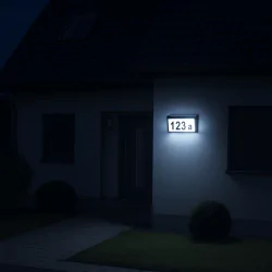 - Wyraźny numer widoczny po zmroku: Zwiększa bezpieczeństwo i ułatwia znalezienie posesji nocą.