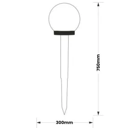 Lampka solarna LED kula duża wbijana 30cm ogrodowa zimna LUMILED