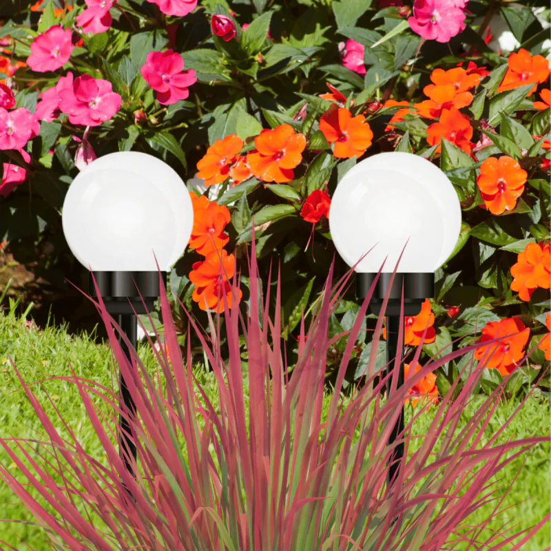Lampa solarna w formie kuli podkreślająca piękno przyrody
