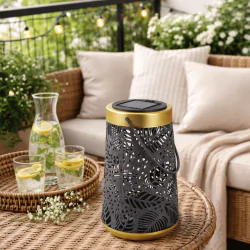 - Praktyczna forma latarenki: Dekoracyjna konstrukcja sprawia, że lampka pięknie prezentuje się na stole, półce lub jako element ozdobny przestrzeni zewnętrznej.