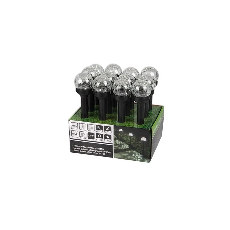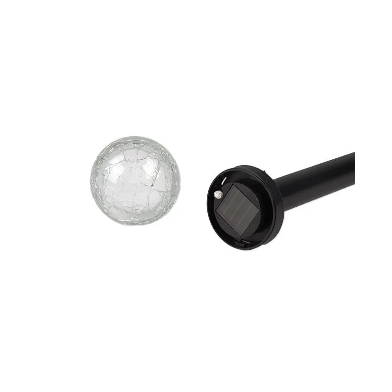 Lampka solarna LED marki LVT wyposażona została w klosz w kształcie kuli przypominającej popękane szkło. Prezentowany model oświetlenia solarnego o średnicy 6cm doskonale nada się jako dekoracją w sklaniaku czy wzdłuż alejki. Lampka solarna LED świeci zimnym światłem o temperaturze barwowej 5500K-6000K i zapala się po wykryciu zmierzchu oraz zasilana jest energią słoneczną.