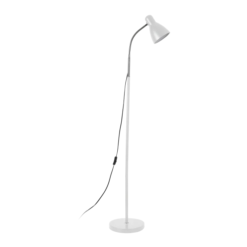 Minimalistyczna lampa podłogowa LAR marki ORNO, doskonale uzupełni oświetlenie w pomieszczeniu, prosta forma wykonania oraz uniwersalna kolorystka sprawiają, że nada się do każdego typu wnętrz. Szczególnie przypadnie do gustu miłośnikom książek, ponieważ dzięki elastycznemu ramieniu, ustawimy strumień światła w dowolnym kierunku. Oświetlenie podłogowe posiada miejsce na żarówkę o gwincie E27 do maksymalnej mocy 20W. Wysokość wynosi 155cm a szerokość 25cm. Model dostępny jest również w kolorze czarnym. Produkt objęty gwarancją producenta.