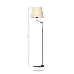 Lampa podłogowa wykonana z metalu, drewna oraz lnu