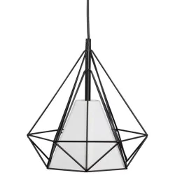 Elegancka lampa wisząca sufitowa HIRA marki POLUX-GOLDLUX idealnie nada się do nowoczesnych wnętrz. Klosz w geometrycznym kształcie dodaje jej uroku. Brak źródła światła w zestawie sprawia, że możesz dopasować moc, barwę oraz natężenie światła do swoich potrzeb. W środku metalowego geometrycznego klosza umieszczony został drugi klosz w kolorze białym, w którym mocowana jest żarówka z trzonkiem E27. W serii Hira dostępna jest również potrójna lampa sufitowa oraz kinkiet.