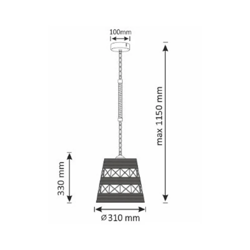 Wisząca lampa sufitowa ALMA ROPE wykonana została z beżowego sznura, który prezentuje industrialny oraz loftowy styl. Produkt nada ciekawego charakteru również w nowoczesnych aranżacjach np. w stylu boho. Będzie także świetnym oświetleniem oraz elementem dekoracyjnym w barze czy restauracji. Lampa sufitowa przeznaczona jest do współpracy z jedną żarówką z tradycyjnym gwintem E27, o maksymalnej mocy do 20W led. Prezentowany model lampy posiada czarny łańcuch, co świetnie komponuje się z beżowym materiałem. Produkt sprzedawany jest bez źródła światła w zestawie. Wymiary lampy to 310 x 330x max 1150 mm.