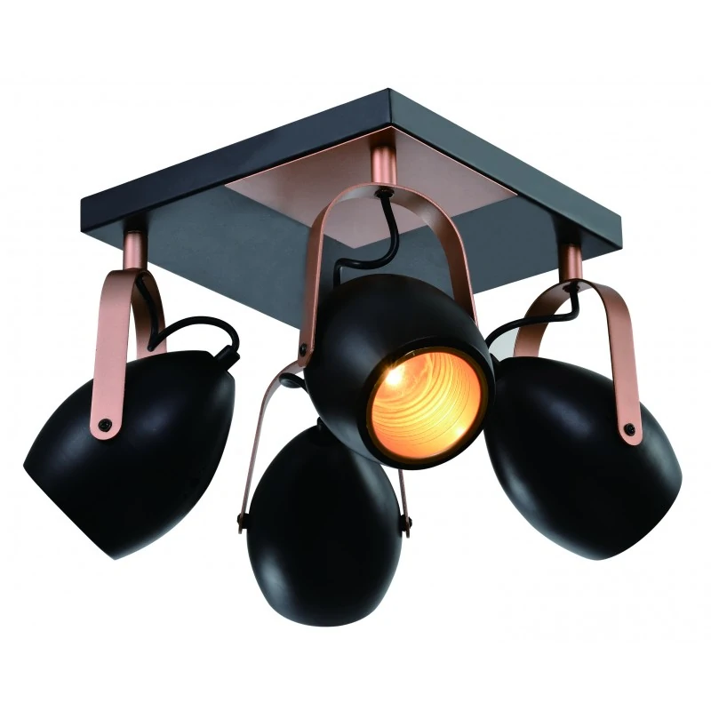 Lampa sufitowa ANICA 98-83128 marki Candellux, o oryginalnej konstrukcji dedykowana jest szczególnie do wnętrz w stylu industrialnym. Wykonana została z metalu w czarnym kolorze z dodatkami miedzianymi i złotymi. Ruchome klosze, sprawiają że oświetlenie dopasuje się zarówno do niskich, zaciemnionych wnętrz, jak i tych przestronnych oraz jasnych, ponieważ dowolnie możemy stawić strumień światła. Oprawa przystosowana jest na 4 żarówki o trzonku E14 do max mocy 40W (brak w zestawie). Wymiary lampy ro: 23cm wysokości i 25cm długości/szerokości. Polecamy zapoznać się z cała serią ANICA. Produkt objęty jest gwarancją producenta.