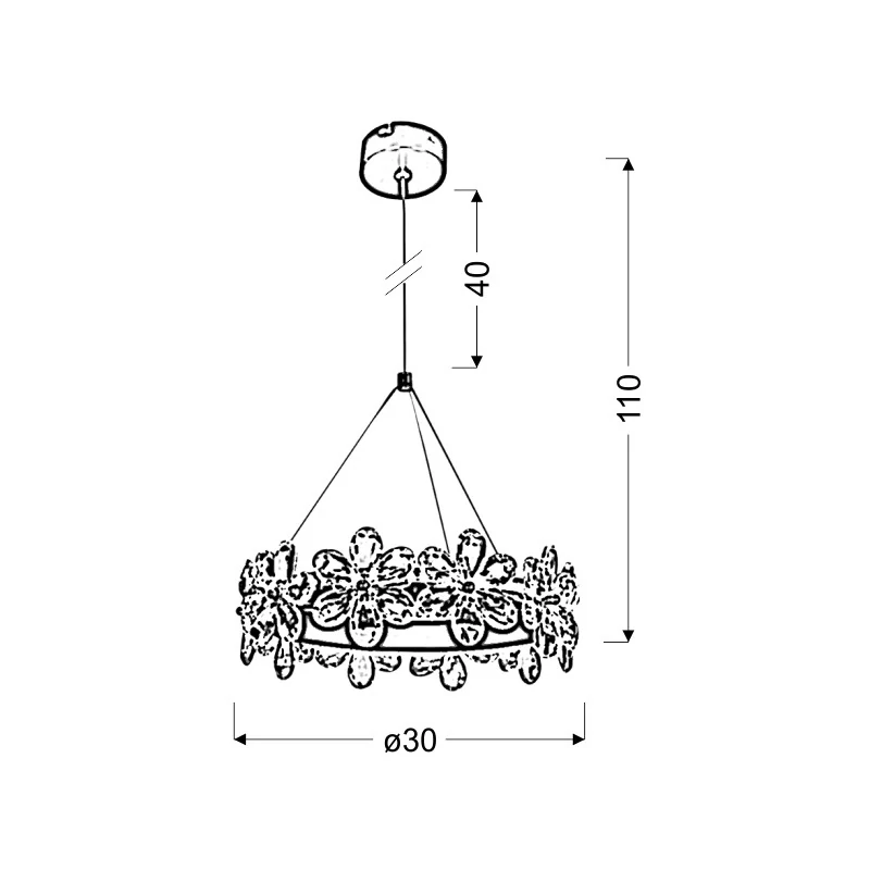 - Materiał: stal, zawiesie stalowe na linkach, ozdoby szklane