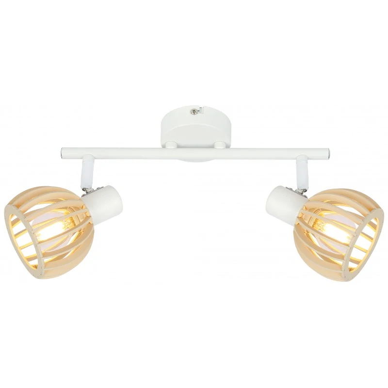 Oprawa ścienno-sufitowa biała z drewnianym kloszem 2x40W E1492-68088 ATARRI Candellux