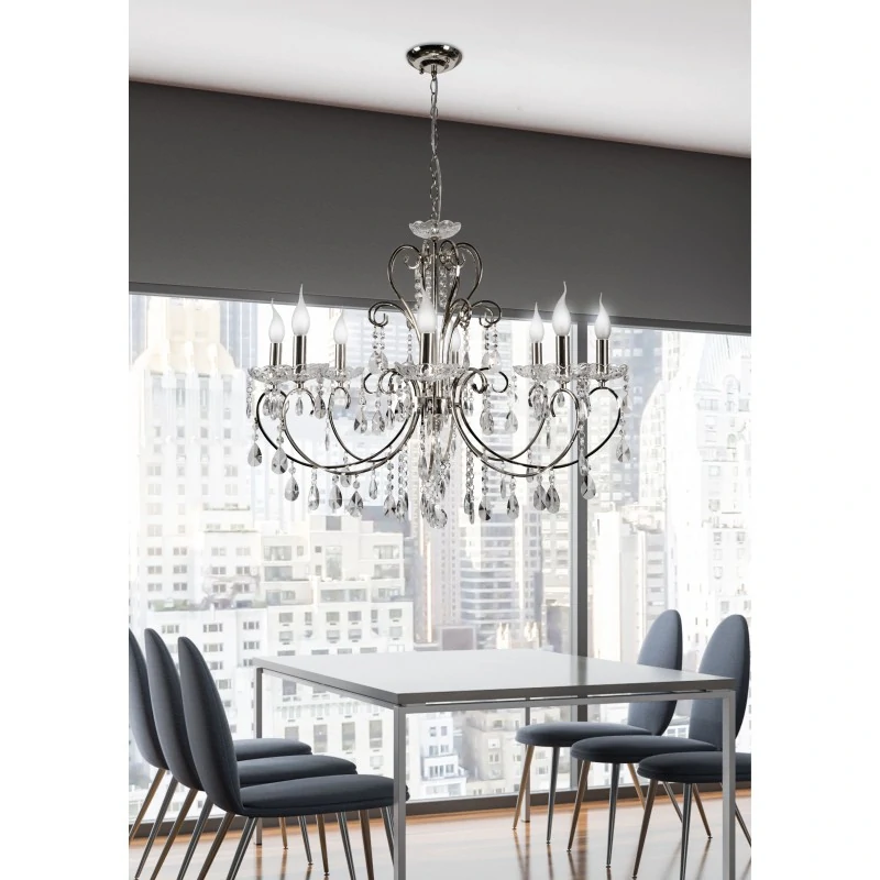 Lampa wisząca chrom na 8 żarówek 8*40W E14 AURORA 38-97579 Candellux