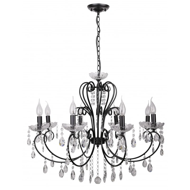 Czarna lampa sufitowa z kryształkami 8*40W E14 AURORA 38-73747 Candellux