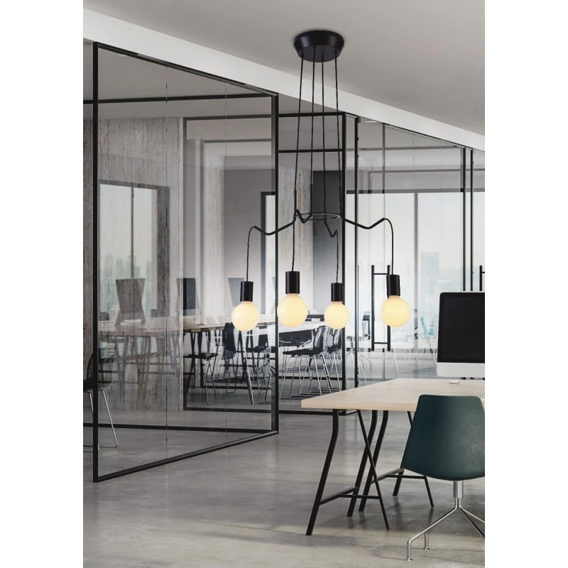 Minimalizm i przestrzenna konstrukcja tak została wykonana lampa sufitowa BASSO 34-71019 marki Candellux. Oprawa wkomponuje się w styl industrialny ale również znajdzie miejsce w surowych pomieszczeniach. Wyjątkowym atutem jest brak kloszy, dzięki czemu możemy zastosować dekoracyjne żarówki o trzonku E27 i do maksymalnej mocy 40W. Oświetlenie BOSSO posiada możliwość regulowania wysokości poprzez samodzielne skrócenie przewodów zasilających. Dostępna jest również w kolorze białym oraz w formie kinkietu. Produkt objęty jest gwarancją producenta.