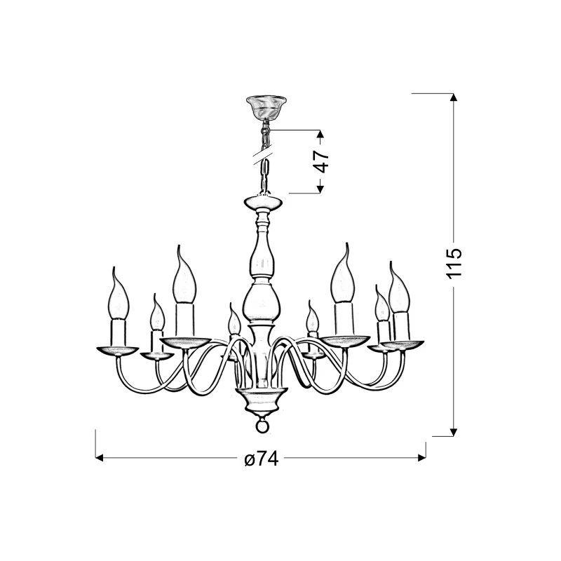 Lampa wisząca BELLAGIO 38-96510 to prosta konstrukcja lecz niezwykle elegancka. Całość utrzymana jest w jasne kremowej kolorystyce. Metalowa podstawa łączy się z ramionkami profilowanymi w kształcie litery S. Całość zawieszona na wytrzymałych łańcuchach, które umożliwiają regulację długości. Oświetlenie sufitowe przystosowane jest na 8 źródeł światła o gwincie E14 do maksymalnej mocy 40W. Polecamy do kompletu dobrać żarówki o kształcie płomyka. Do kompletu pasuje lampa wisząca pięcioramienna oraz kinkiet 1 i 2 punktowy. Produkt objęty jest gwarancją producenta.