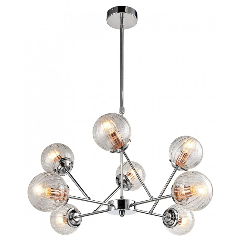 Szklana lampa wisząca na 8 źródeł światła 40W E14 CHROM+MIEDŹ BEST 38-67289 Candellux