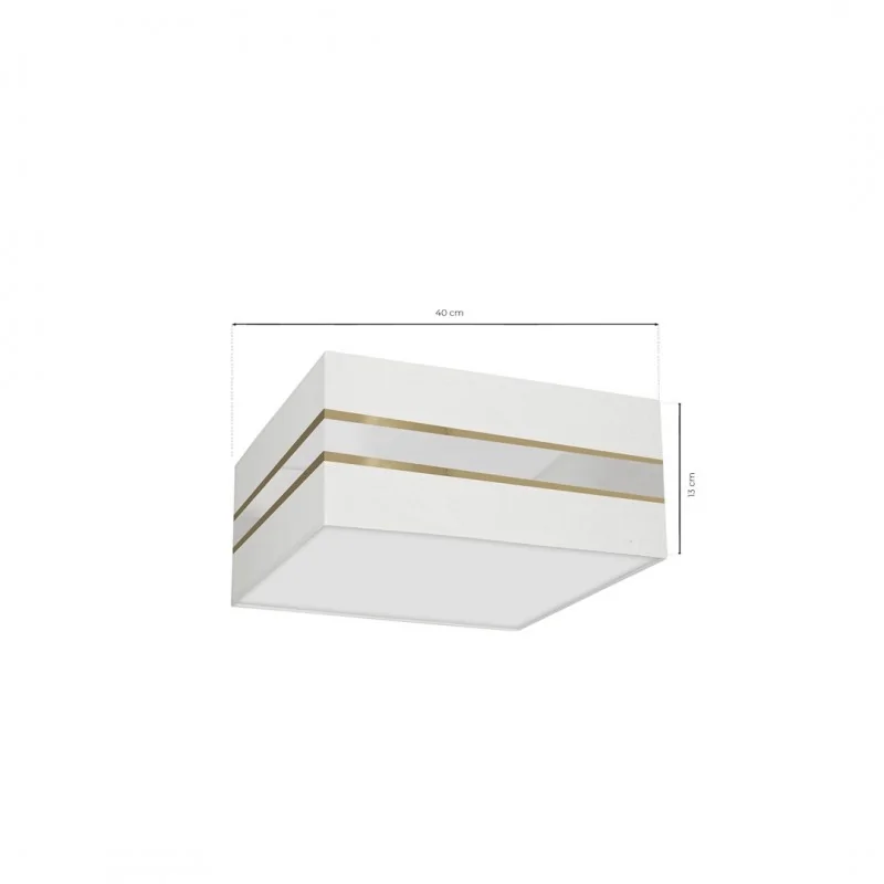 Lampa sufitowa MLP7347 z kolekcji ULTIMO polskiej firmy EKO-LIGHT, to zdecydowanie stylowe oblicze minimalizmu, które zachwyci każdego, kto do swojego domu lub biura szuka stylowych dodatków ze szlachetnym wykończeniem. Klosz w formie kwadratu wykonany został z tkaniny i usztywniony jest metalowymi elementami. Wymiary lampy to 15cm wysokości oraz 40cm szerokości. W prezentowanym oświetleniu należy zamontować 2 żarówki o gwincie E27 do maksymalnej mocy 60W - brak źródła światła w zestawie. Klasyczny biały kolor został przełamany transparentnym paskiem pośrodku klosza oraz złotymi liniami. W serii ULTIMO dostępnych jest 20 modeli lamp w kolorze białym oraz czarnym.