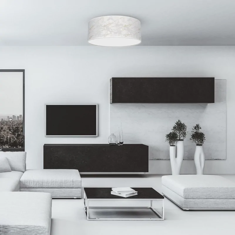 Lampy sufitowa MLP7307 z kolekcji SENSO marki EKO-LIGHT, to niezwykle przemyślana propozycja, wykonana z zachowaniem najwyższych standardów jakości, dzięki temu można mieć pewność, że lampa przetrwa w nienagannym stanie przez wiele lat i długo będzie cieszyć oko swoim eleganckim wyglądem. Oświetlenie dostosowane jest do trzech żarówek typu E27 (brak w zestawie). Plafon o sporych wymiarach dopasuje się do ciemnych i wymagających pomieszczeń - jego średnica wynosi 50cm, a wysokość jest równa 13cm. Lampa wykonana jest z tkaniny, ze złotymi dekoracjami przypominjące marmur oraz jest usztywniona metalowymi elementami. W tej kolekcji znajdziemy aż 20 lamp o różnej konstrukcji.