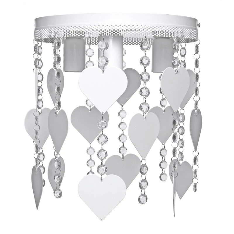 Lampa sufitowa z wiszącymi kryształkami ozdobiona serduszkami