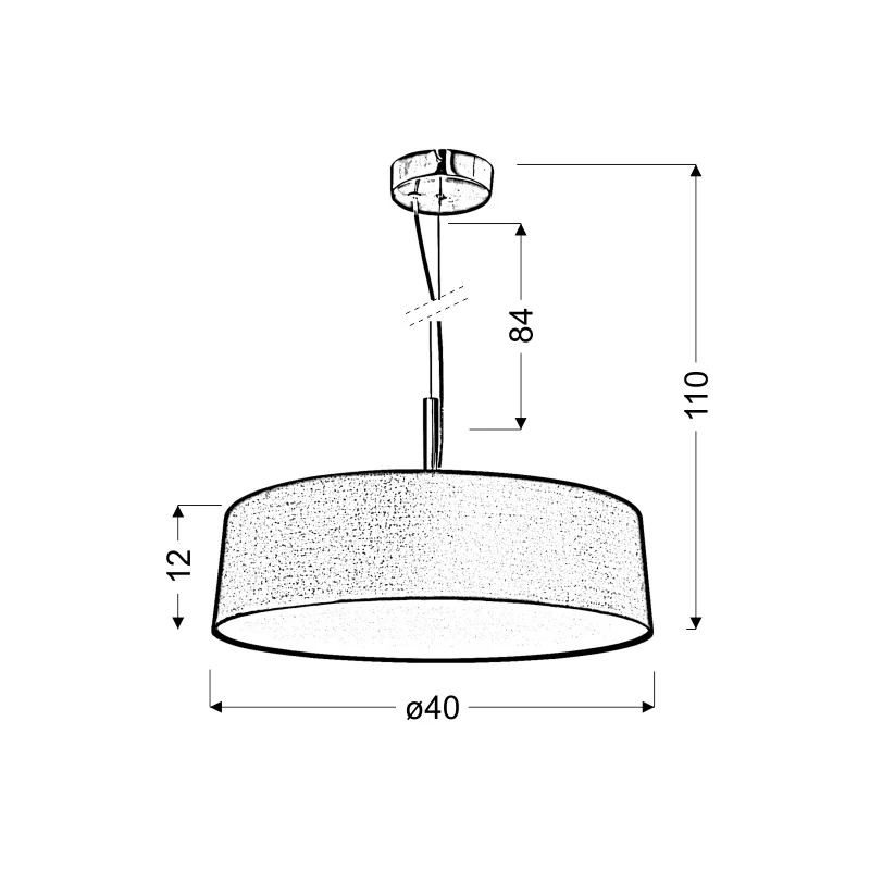 - Materiał: zawiesie stalowe, abażur tkanina/PCV