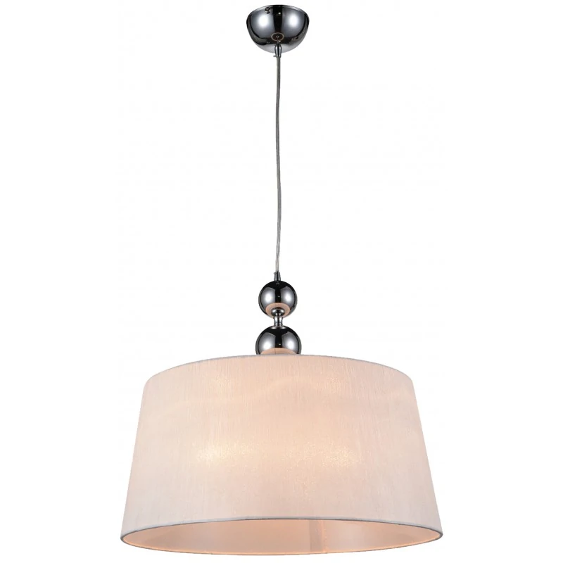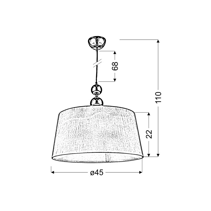 Wisząca lampa KLARA 31-21601 powstała z myślą zarówno o klasycznych jak i nowoczesnych wnętrzach. Została wykonana z metalowej, chromowej i minimalistycznej podstawy oraz delikatnej kreszowanej tkaniny znajdującej się na białym abażuru. Dedykowanym źródłem światła jest żarówka o gwincie E27 i do maksymalnej mocy 60W. Oświetlenie sufitowe marki Candellux posiada wymiary takie jak: wysokość - 110cm, szerokość - 45cm oraz głębokość - 45cm. Seria CLARA składa się z kinkietu, lampy biurkowej i trzypunktowego zwisu. Produkt objęty jest gwarancją producenta.