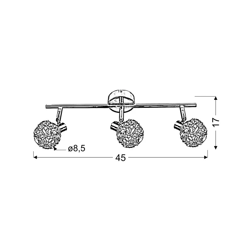 Lampa sufitowa COLLAR 93-13668 marki Candellux, została skonstruowana w sposób oryginalny oraz funkcjonalny. Druciane klosze z ozdobnymi akrylowymi koralikami, zostały umieszczone na metalowej postawie, całość zachowana w chromowym kolorze. Dodatkowo oświetlenie posiada ruchome klosze, które możemy ustawić w pionie i poziomie. Do lampy należy dobrać trzy żarówki o gwincie G9 o maksymalnej mocy 40W. Wymiary prezentowanego oświetlenia to: 45cm szerokości i 17cm wysokości. Do kompletu możemy dobrać lampę 2 i 4 punktową, plafon oraz kinkiet. Producent oferuje dwa lata gwarancji.